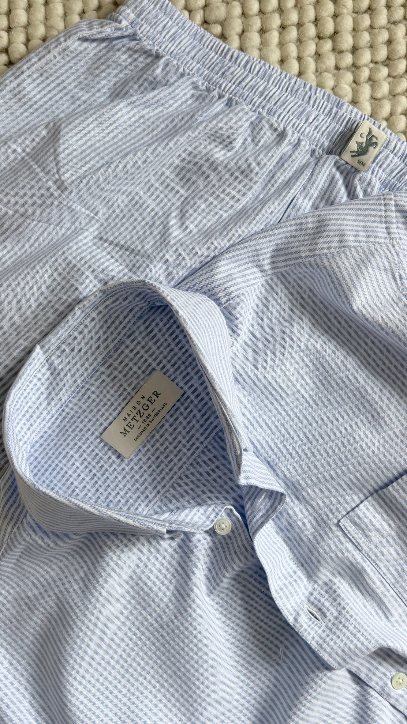 Jedes Stück von MAISON METZGER ist tief in der europäischen Textiltradition verwurzelt. Wir wählen hochwertige italienische Stoffe aus, gewebt von der traditionsreichen Weberei Carlo Bassetti, gegründet im Jahr 1875 und bekannt für verantwortungsvolle Beschaffung sowie GOTS-zertifizierte Baumwollproduktion. Diese Materialien werden aufgrund ihres edlen Griffes, ihrer Langlebigkeit, Atmungsaktivität und zeitlosen Ästhetik ausgewählt. Die Konfektion erfolgt in Portugal durch erfahrene Zuschneider:innen und Näher:innen und gewährleistet nicht nur höchste Qualität, sondern auch eine gleichbleibende Passform und Verarbeitung über alle Kollektionen hinweg.