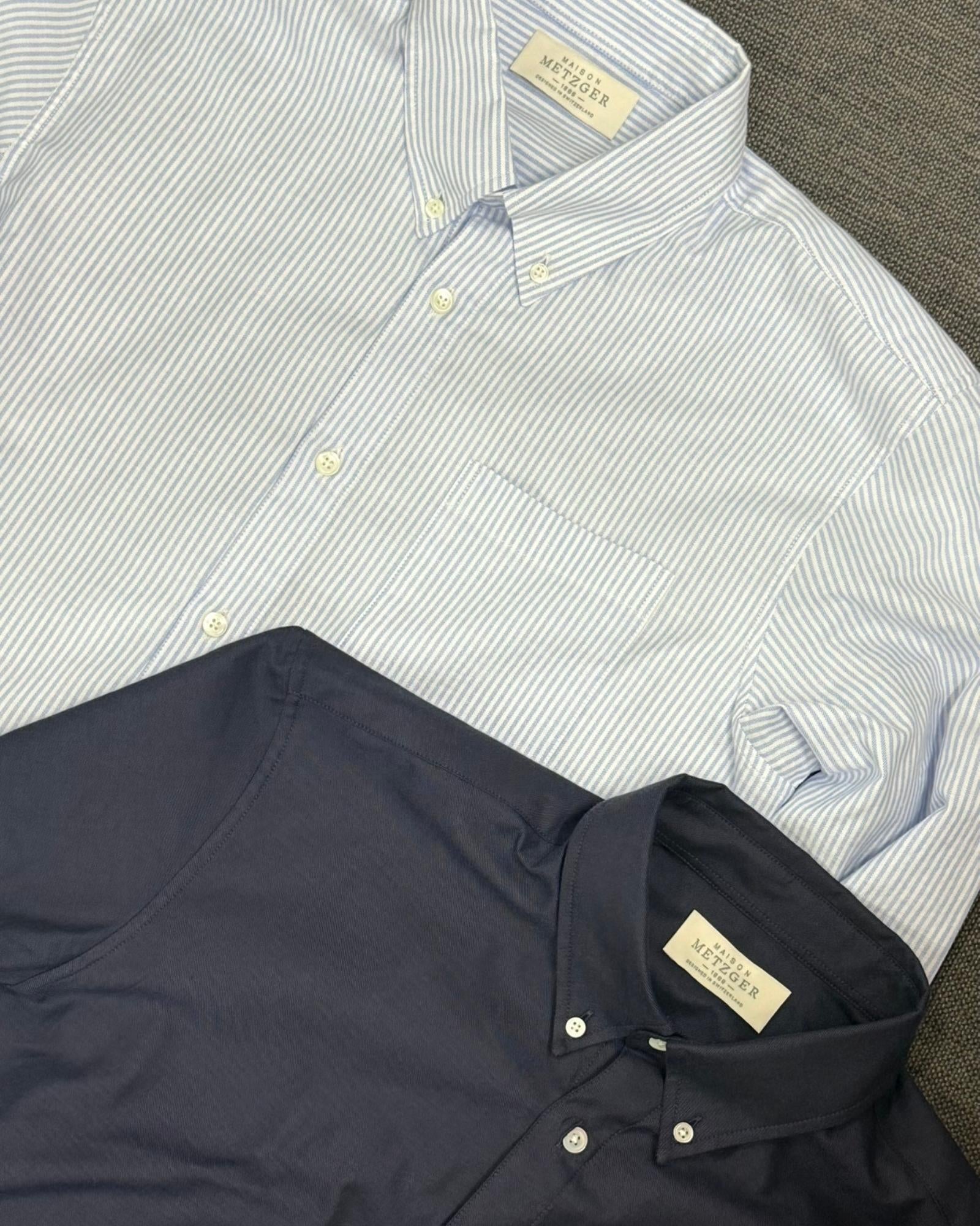 Das M2 Oxford Hemd ist unser zeitloses Button-Down-Hemd, das mühelos zwischen klassischem und lässigem Stil wechselt. Erhältlich in Oxford Babyblau, Weiß und gestreift, ist es ein vielseitiger Begleiter für jeden Tag.