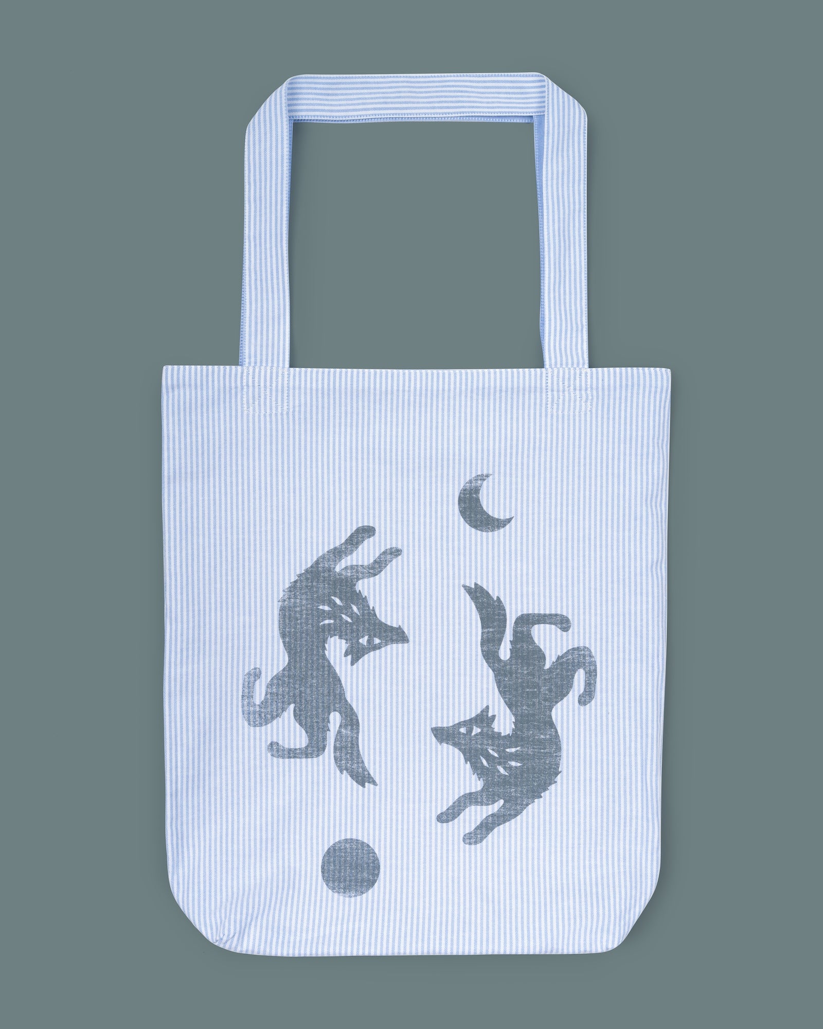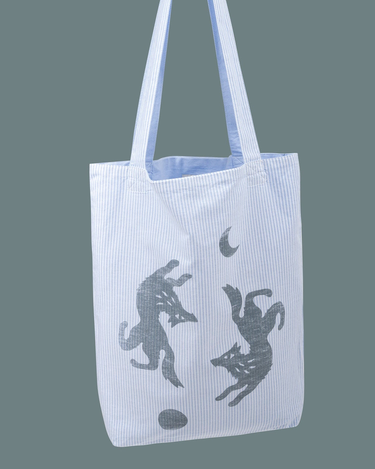 Wendbares Design – eine Seite in gestreiftem Oxford mit dezentem Wolf-Print, die andere in klassischem Babyblau für einen klaren, reduzierten Look.